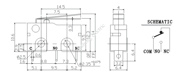 工作參數(shù) Contact Rating: 250VAC ,3A 接觸電阻 Contact Resistance: 50mΩ MAX 絕緣電阻 Insulation Resistance: 500VDC,100MΩ 耐壓強(qiáng)度 Dielectric Strength: 500VAC,1MIN 工作溫度 Operating Temperature: 10~60℃ 電器壽命 Electrical Life: 10000 Cycles |