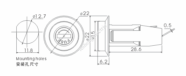| For Fuse | Rated Amperage | Rated Voltage | Operating Power | Contact Resistance | Insulation Resistance | Dielectric Strength |