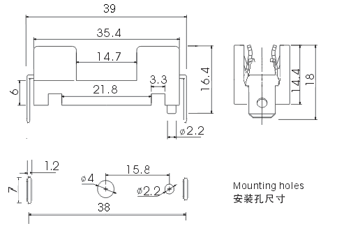 · Mounting裝配方式: PCB and By Screw PCB或用螺釘固定