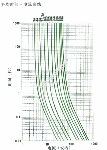 | 電流額定值百分比 | 額定電流 (A) | 熔斷時間 | |