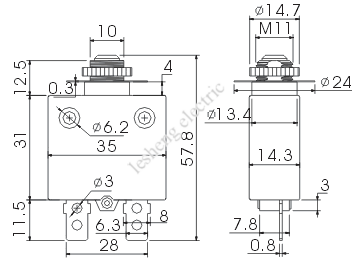 | 電流負載(額定電流百分比) | 斷路時間 |