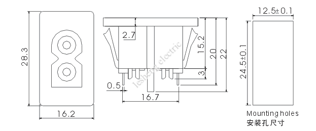 5. 裝配方式:插卡式,裝配板厚度0.8,1.0或1.2mm