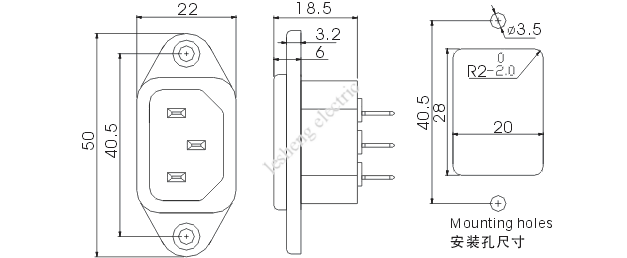 1. 主體材料Body Material: Black Glass-Fiber P.B.T.94V0