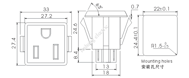 裝配方式:插卡式,裝配板厚度0.8,1.0,1.2,2.0或2.5mm